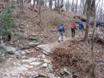 Starting on the trail went beautifully, I managed to kick up the first hill just fine, using some new hiking techniques that I’ve learned. Had a lovely view at Jefferson Rock, then while I was mesmerized by the church steeple in Harpers Ferry, I wasn’t looking where I was stepping. Going down a stone step, my right foot landed on ice, and quickly slid out from underneath me causing my left knee to slam into the rock and twist my left ankle. After a few minutes of mind-blinding pain, it went away. (Thanks Jim Floyd for staying with me and helping me up.)