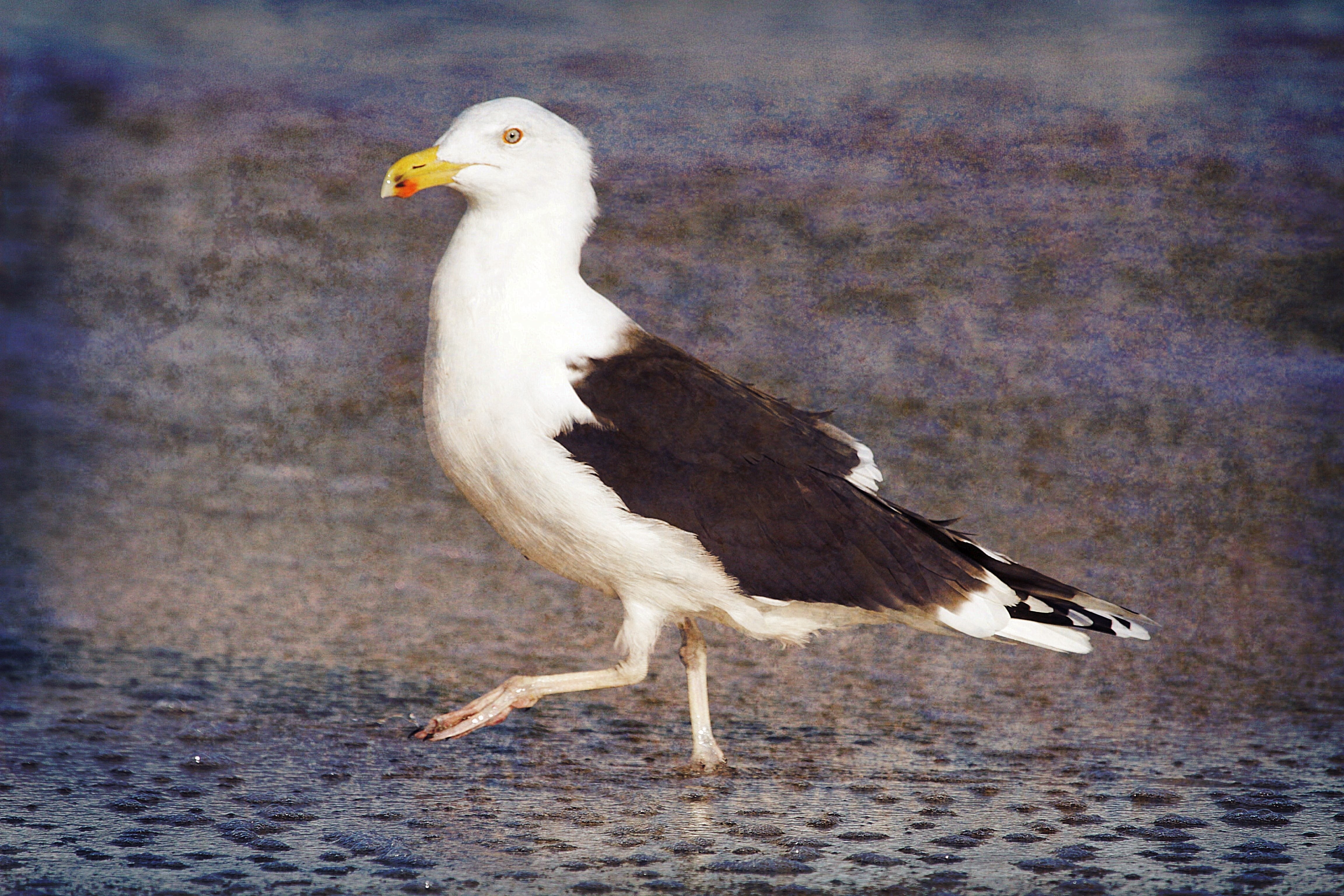 This is a Great Black-backed Seagull walking through the surf. Exposure edits in PS Express, then given the Bonfire preset in Camera Awesome.