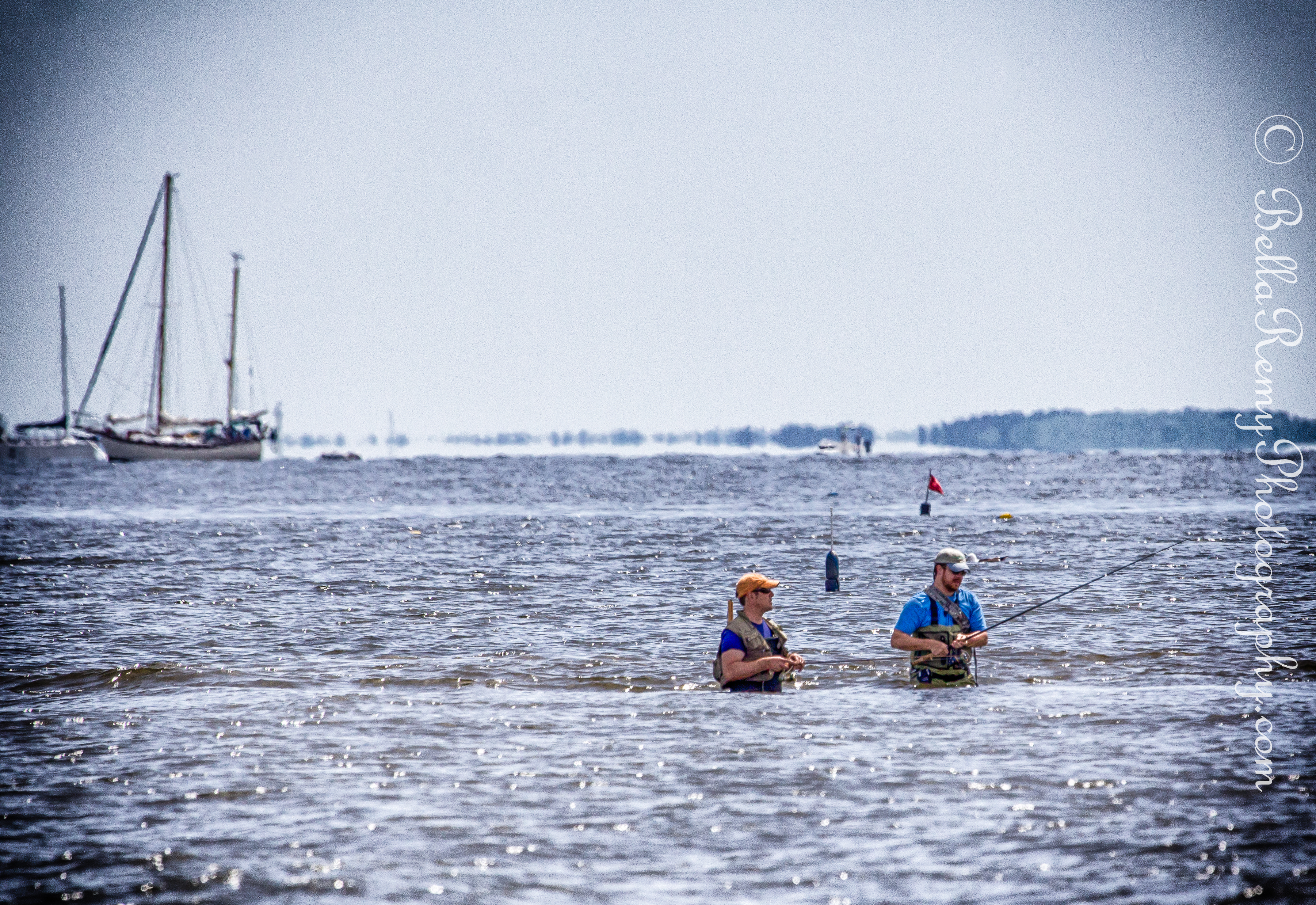 Even men standing mid-water hoping to catch something good.