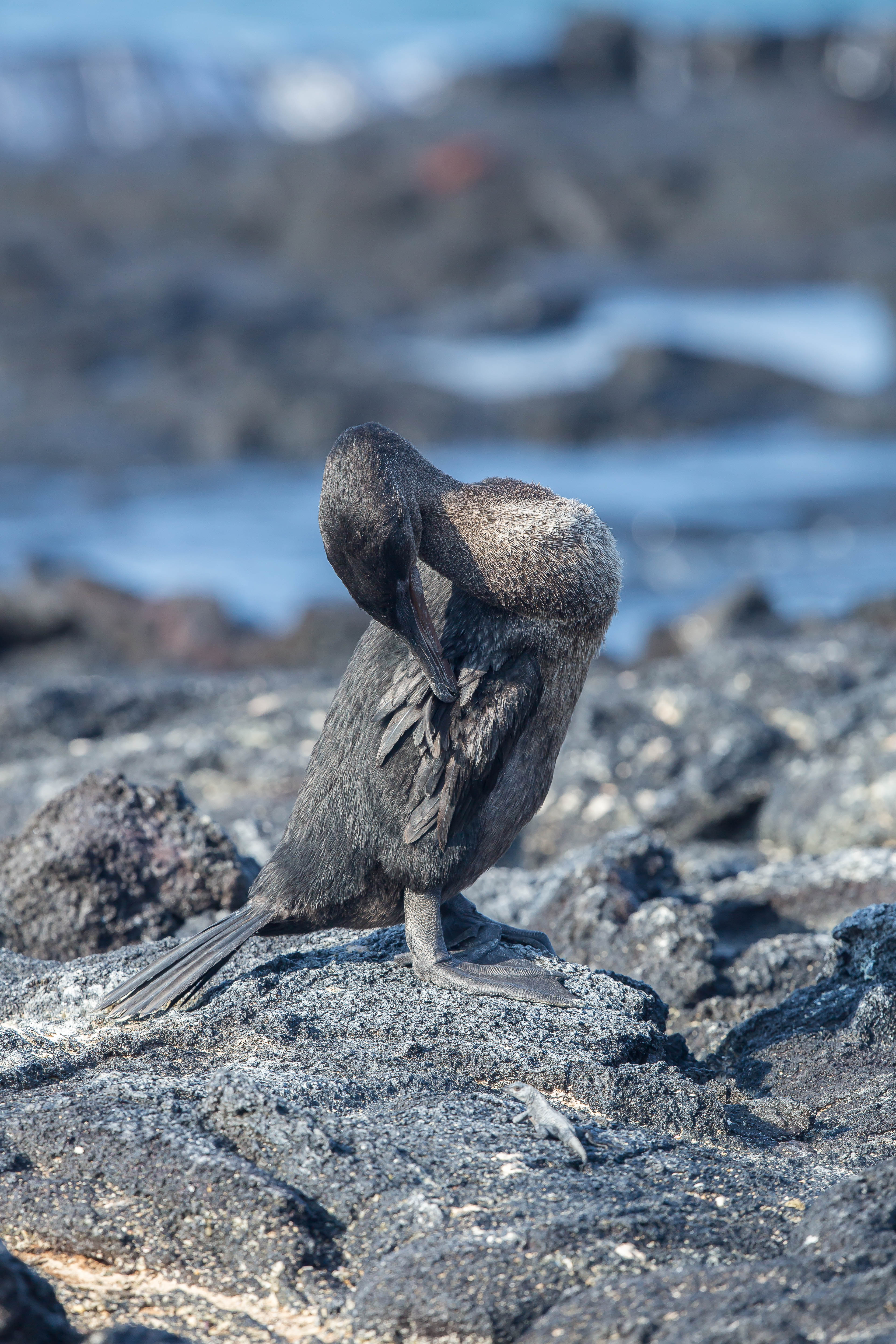 I like the photos – especially the last one with the little lizard at the bottom of the photo – and how you’ve captured these interesting birds. They look so similar to the Cormorants we see around the Midwest and yet it’s crazy to see how being flightless has affected the overall structure of their wings. Honestly they’re pretty puny and scrawny – no offense guys – but how could we expect any more?
