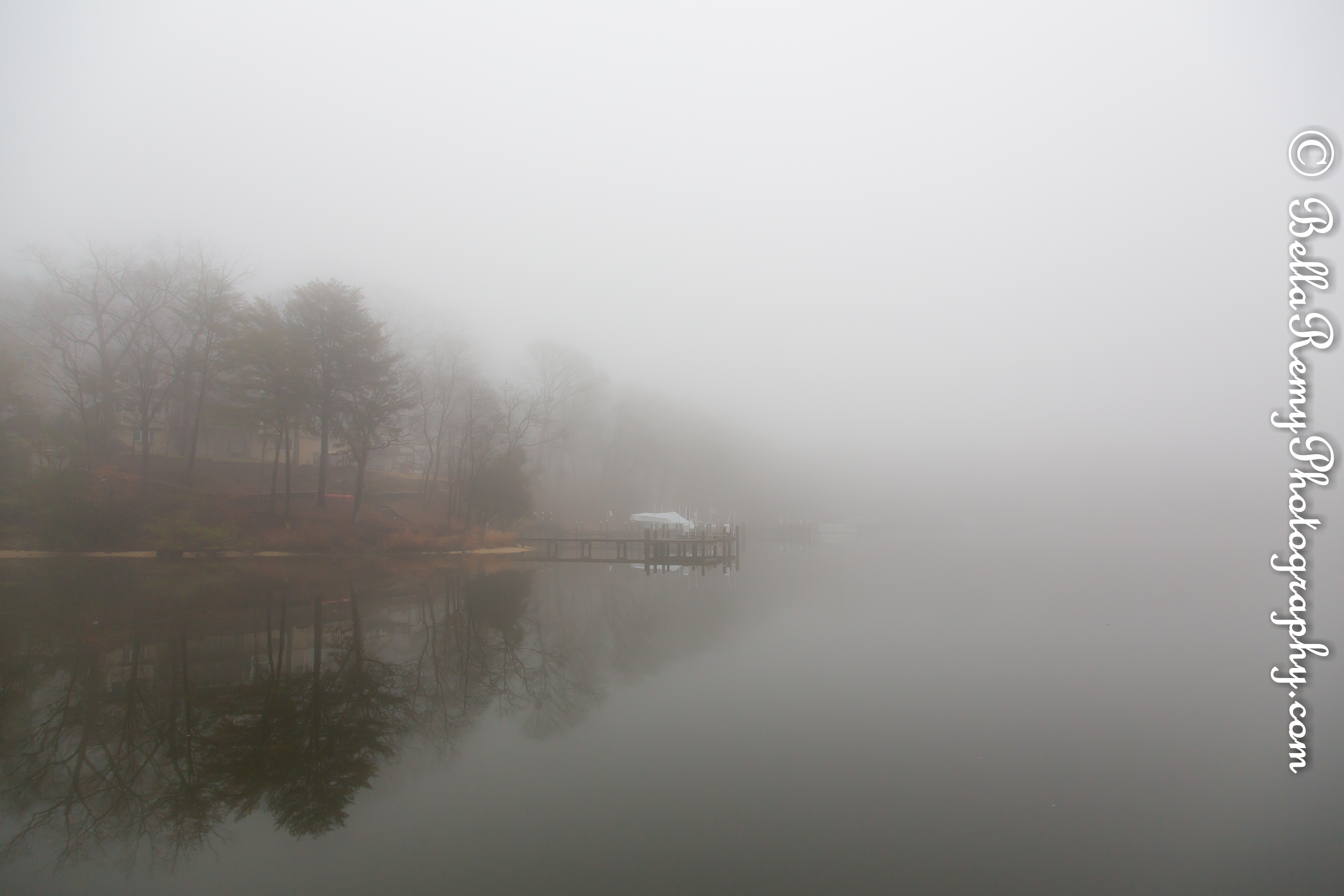 Into the foggy mist on a wintery afternoon. The hustle and bustle of the holidays seemingly silenced by the calm and peaceful fog.