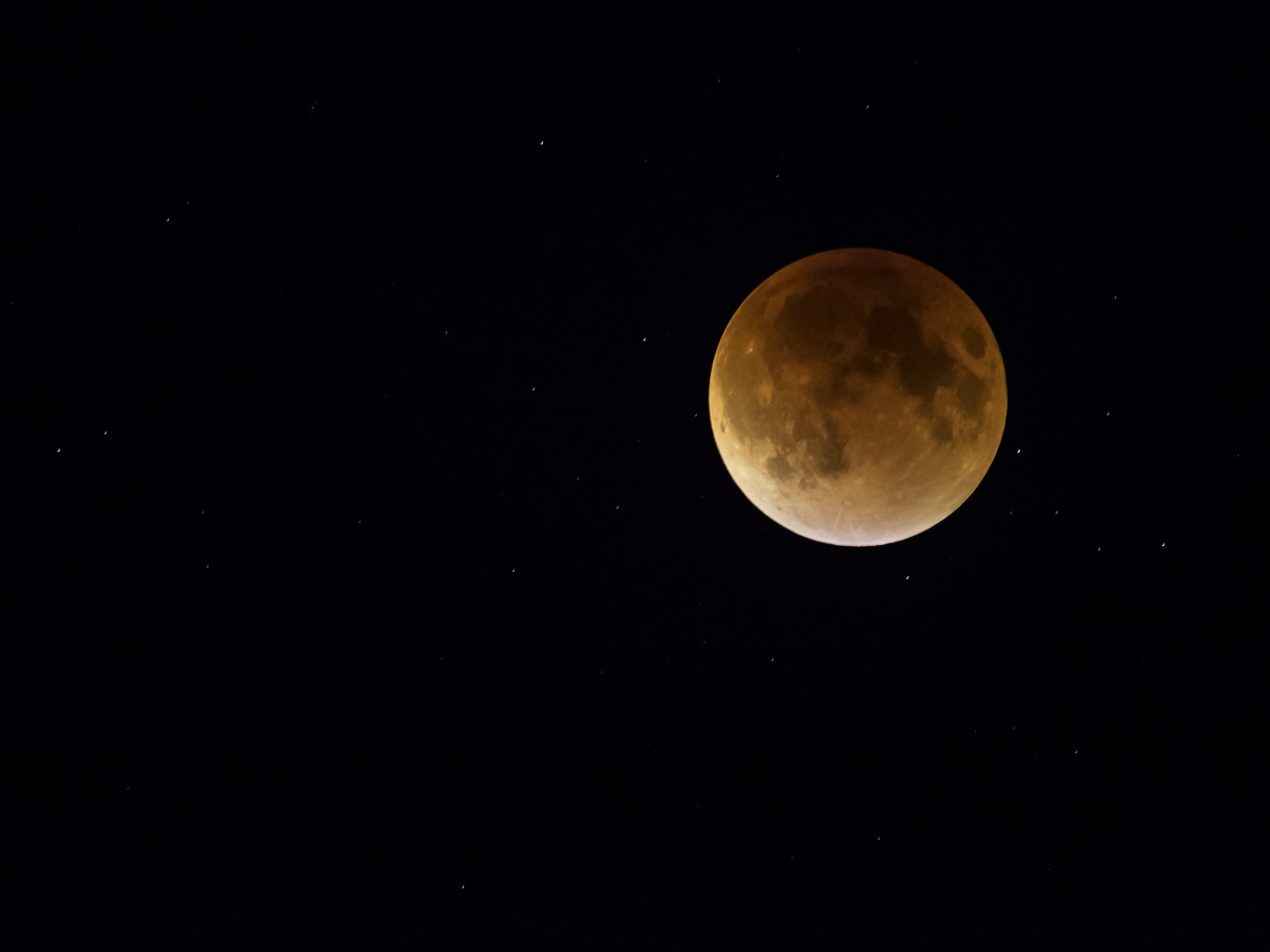 It was with great fortune that I was able to spend about 15 minutes with the Super Blood Moon as there was a break in the clouds. Snap, Snap, nothing was in focus. The moon was moving too fast. I ended up having to really boost the ISO so that the shutter speed wasn’t dinosaur slow. Opened up the aperture as much as I could with an extender and ended up with these settings:
