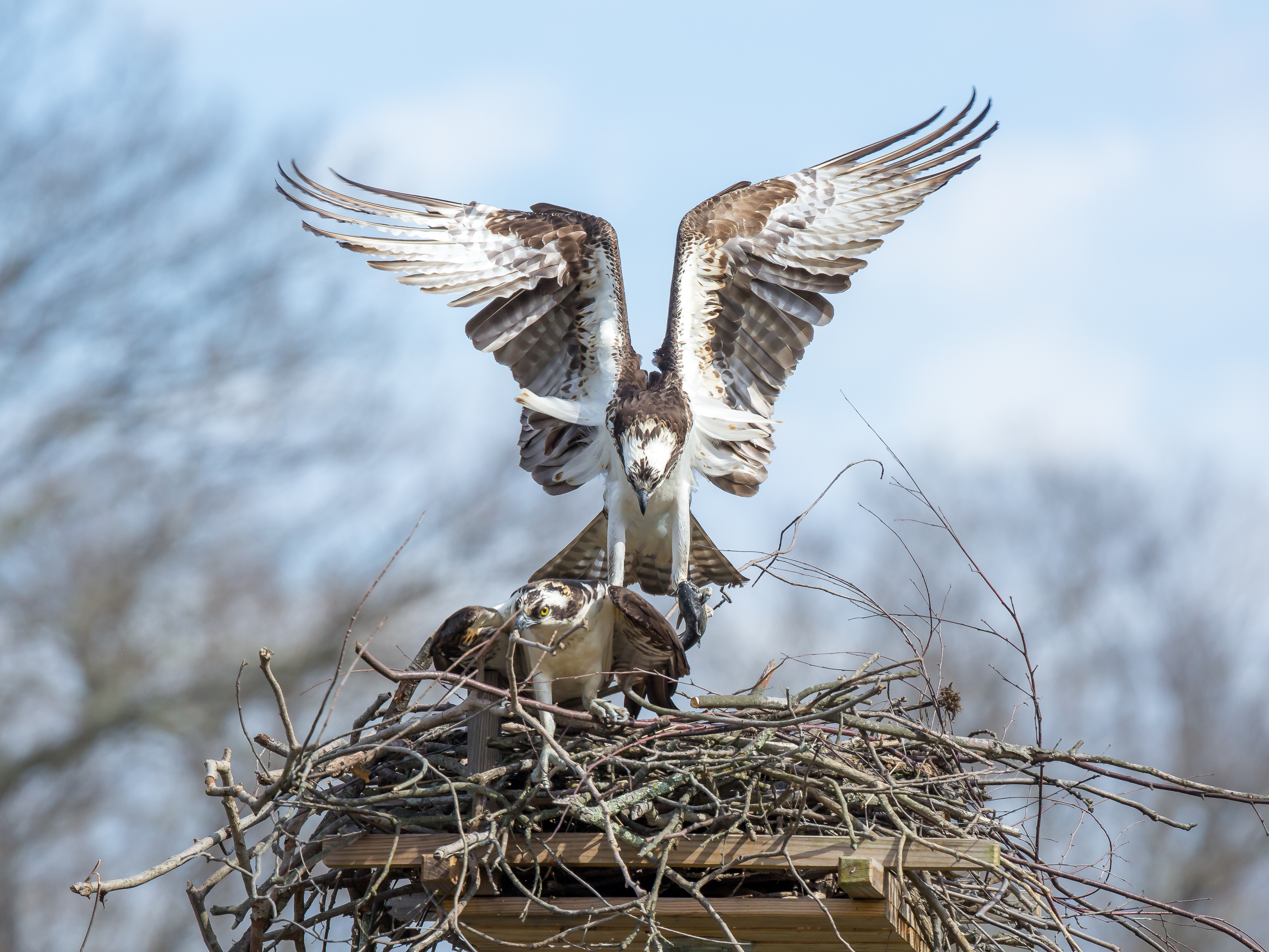 Ospreys are such great birds. Hope their nest is on your property this time so they will be safe.