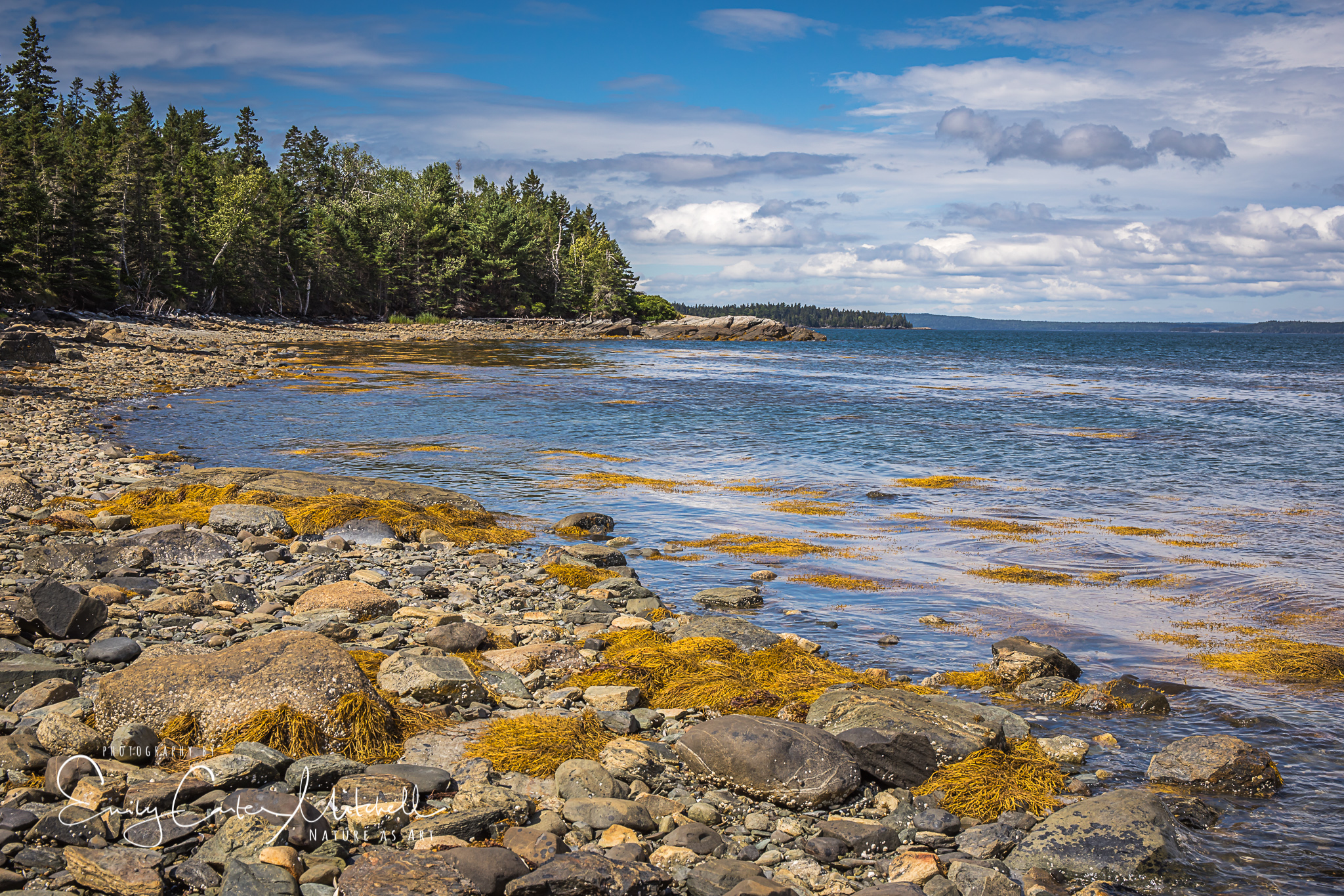 The trail from the parking area to the water is just under three miles in length. Arriving to the water’s edge it was as if I had my own private waterfront. A rocky beach with granite boulders protect the cove.