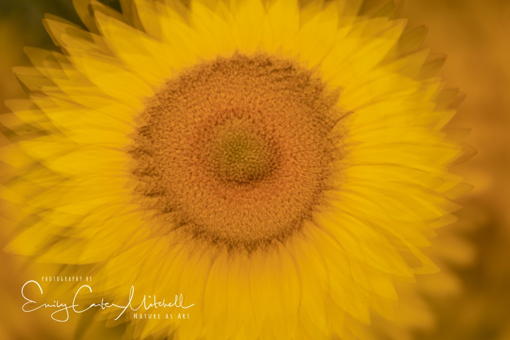 Finally, Sunflowers are a great subject to utilize the in-camera multiple exposure option I mentioned in my previous post. It was a couple of years ago when I was introduced to this in-camera feature by Denise Ippolito, but had never put it into practice. So at last I had a chance to do so with the sunflowers. A tripod is essential and it really helps to have a lens that works with a tripod collar. With the Canon 5D Mark IV, the Live View allows you to see how the sequential image will look on the previous one(s).