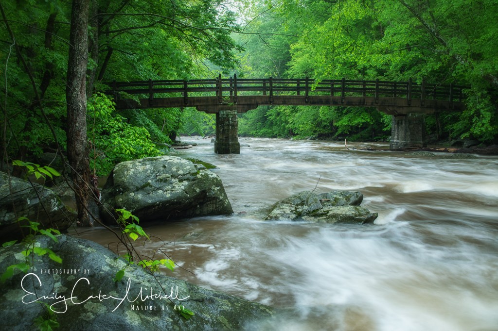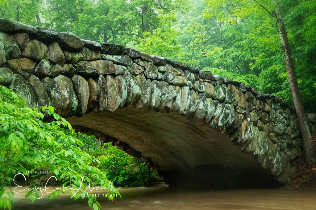 As I had visited this bridge several times before I wanted to try a different angle so I took the time to walk to the other side as I hadn’t done so before. The Creek was raging and full with water from the constant weekend rain and I was thankful to have tall rubber boots on. Where I usually was able to get to the water’s edge it was completely inaccessible and with the water rushing strongly it wasn’t worth the risk to be washed away.
